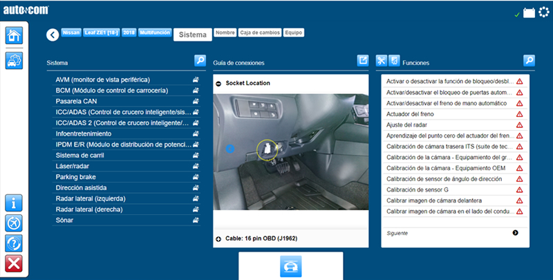 - La herramienta de diagnóstico conectada y el vehículo, así como el sistema seleccionado.